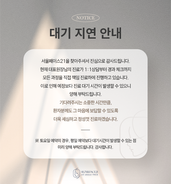 서울페이스21은 한 곳에서 얼굴뼈와 얼굴 연조직, 두 영역을 한 번에 고려하여 가장 이상적인 얼굴 라인을 완성합니다.
