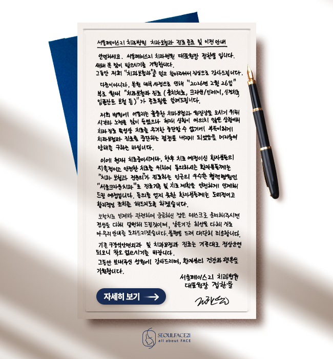 서울페이스21은 구강악안면외과, 치과보철과, 치과교정과 협진으로 Total Face Solution을 제공합니다.